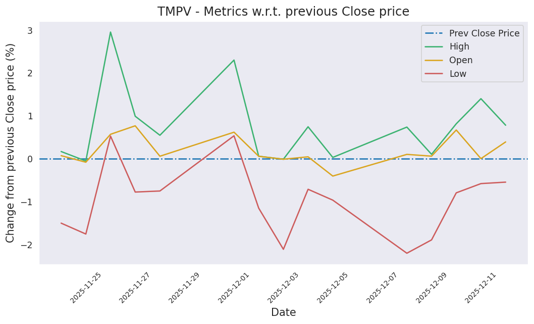 Previously, TMPV closed above its last close price on Monday, December 08, 2025 which was 4 days ago.