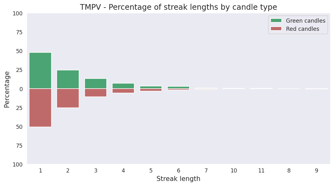 Longest streak of Green candles: 11 trading days from January 01, 2021 to January 15, 2021