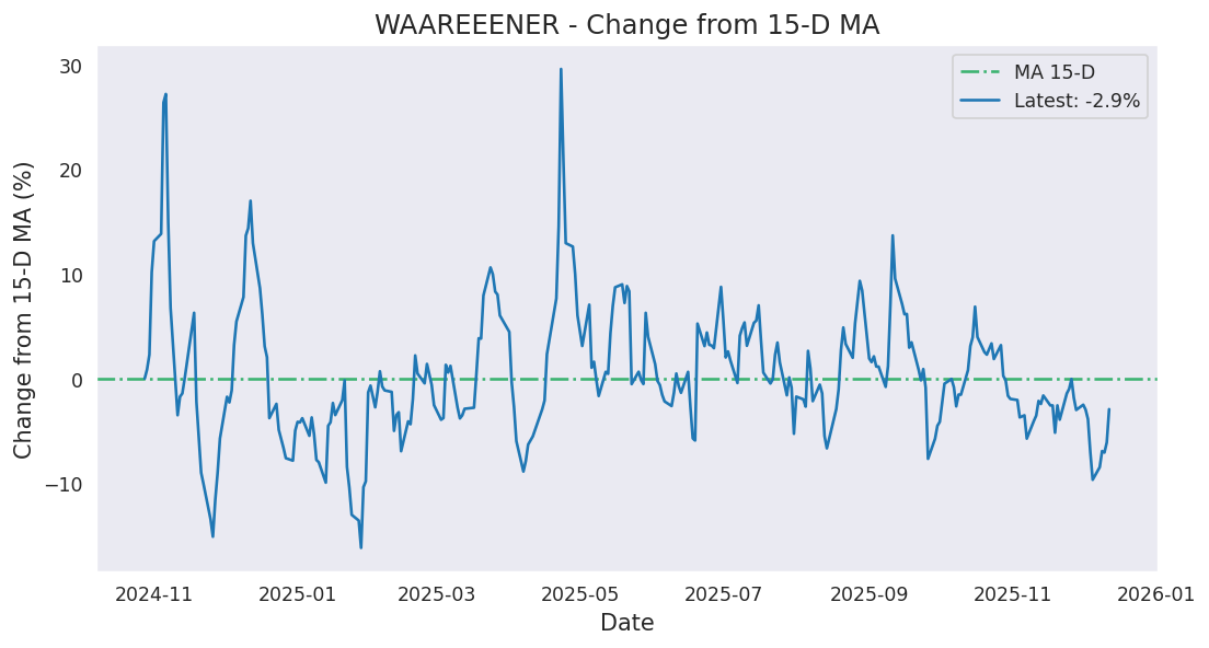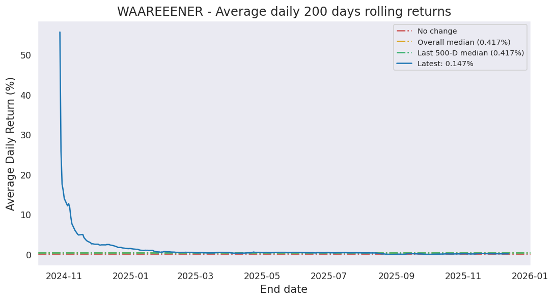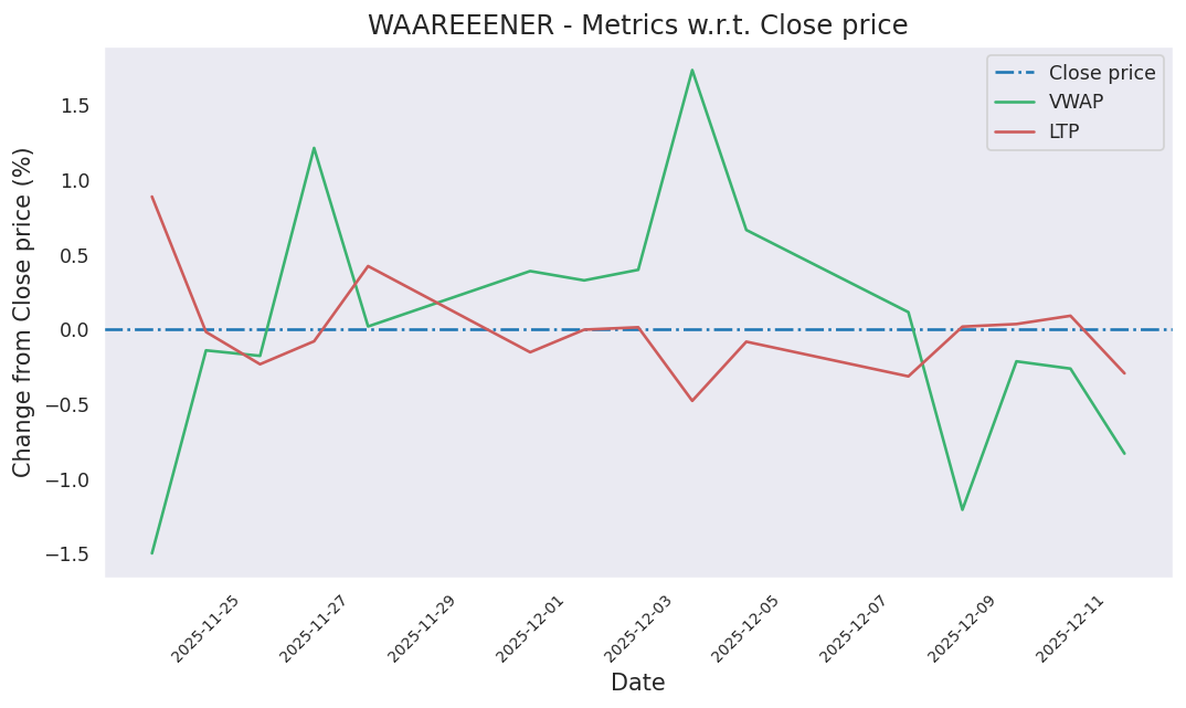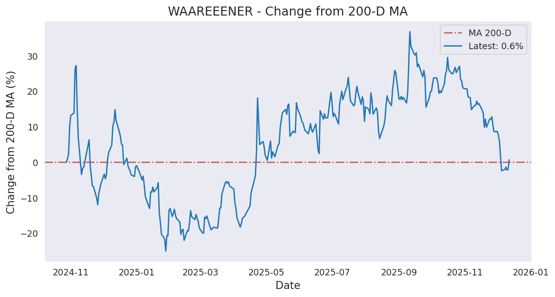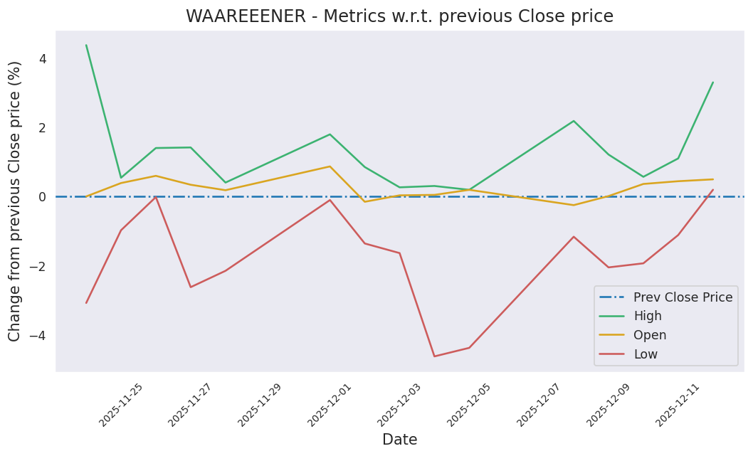 Previously, WAAREEENER closed above its last close price on Thursday, December 04, 2025 which was 8 days ago.