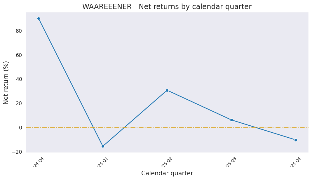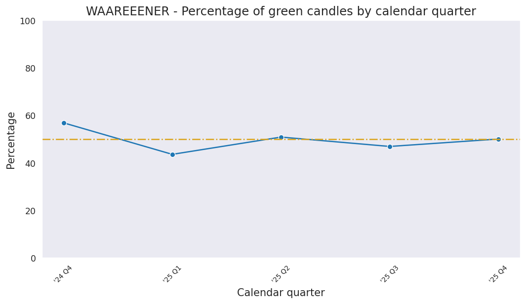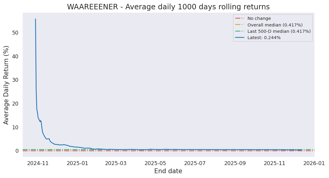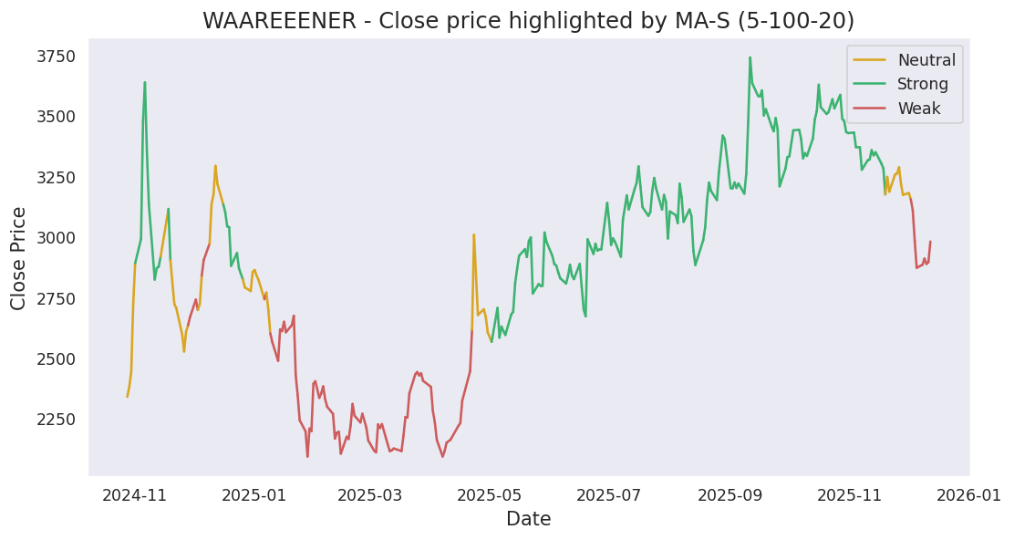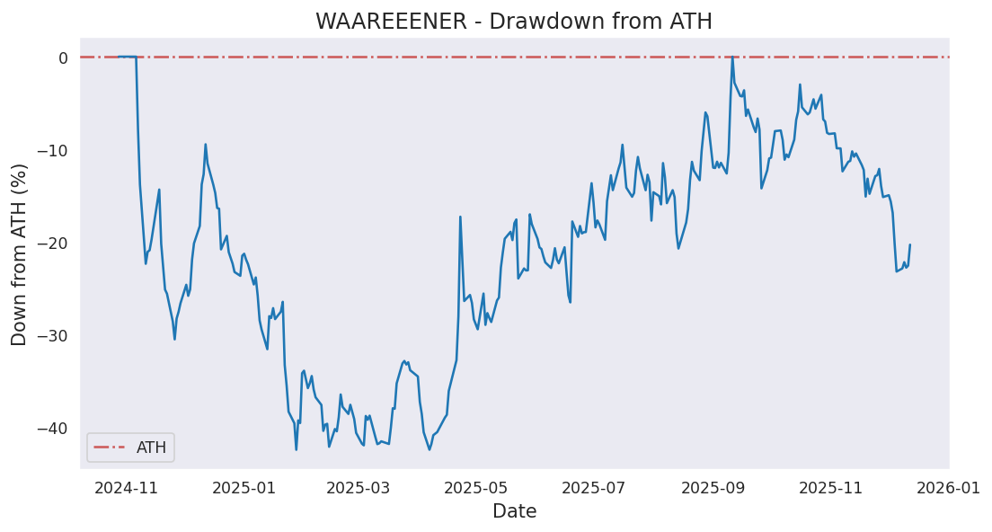 Previously, WAAREEENER closed above its last close price on Thursday, December 04, 2025 which was 8 days ago.